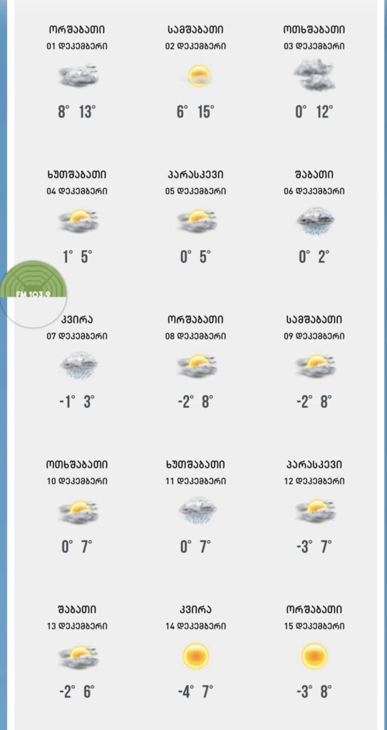 13–15 დეკემბერი – ცივი, მაგრამ მზიანი პერიოდი: